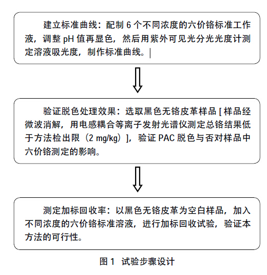 (4)脫色法,此方法使用PA脫色劑脫色效果較為理想,但是需要填裝脫色柱,操作繁瑣費時。本文在上述研究的基礎(chǔ)上,嘗試使用聚合氯化鋁(PAC)作為脫色劑,直接將PAC加入提取液中進行脫色,再顯色后用比色法測定六價鉻含量,以解決色素溶解干擾顯色、脫色劑吸附六價鉻等問題,簡化試驗操作,提高檢測效率。
